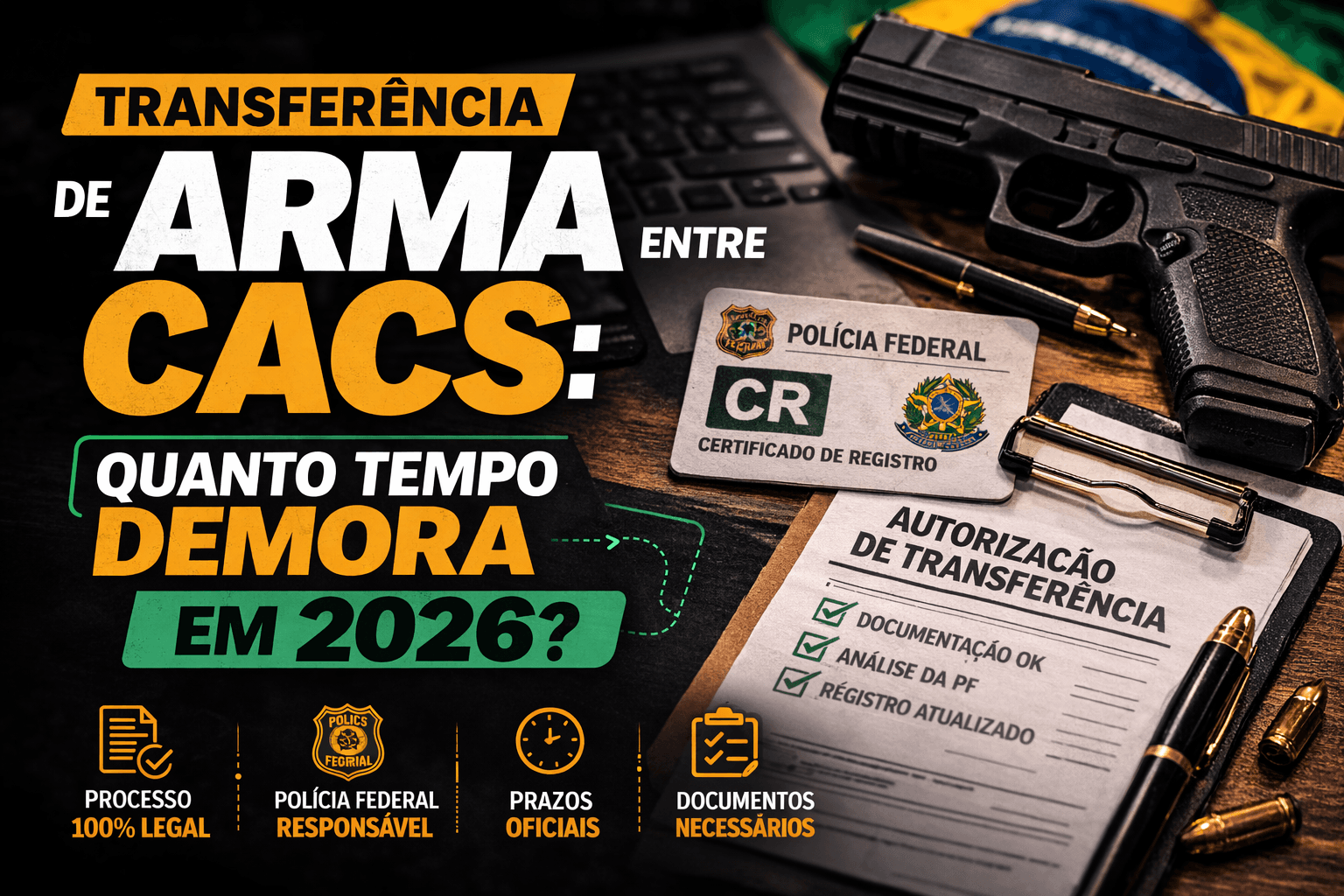 a transferência de arma entre CACs não é imediata, e o prazo oficial da PF hoje aponta até 90 dias corridos para a análise do requerimento e até 90 dias corridos para a etapa de emissão/disponibilização do CRAF.